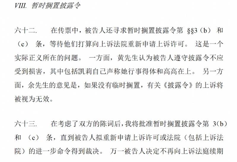 最新的判决书显示,被告人寻求暂时搁置披露令,等待他们向上诉法院重新申请上诉许可。在考虑了原告、被告双方的陈词后,香港高院法官决定批准暂时搁置披露令。